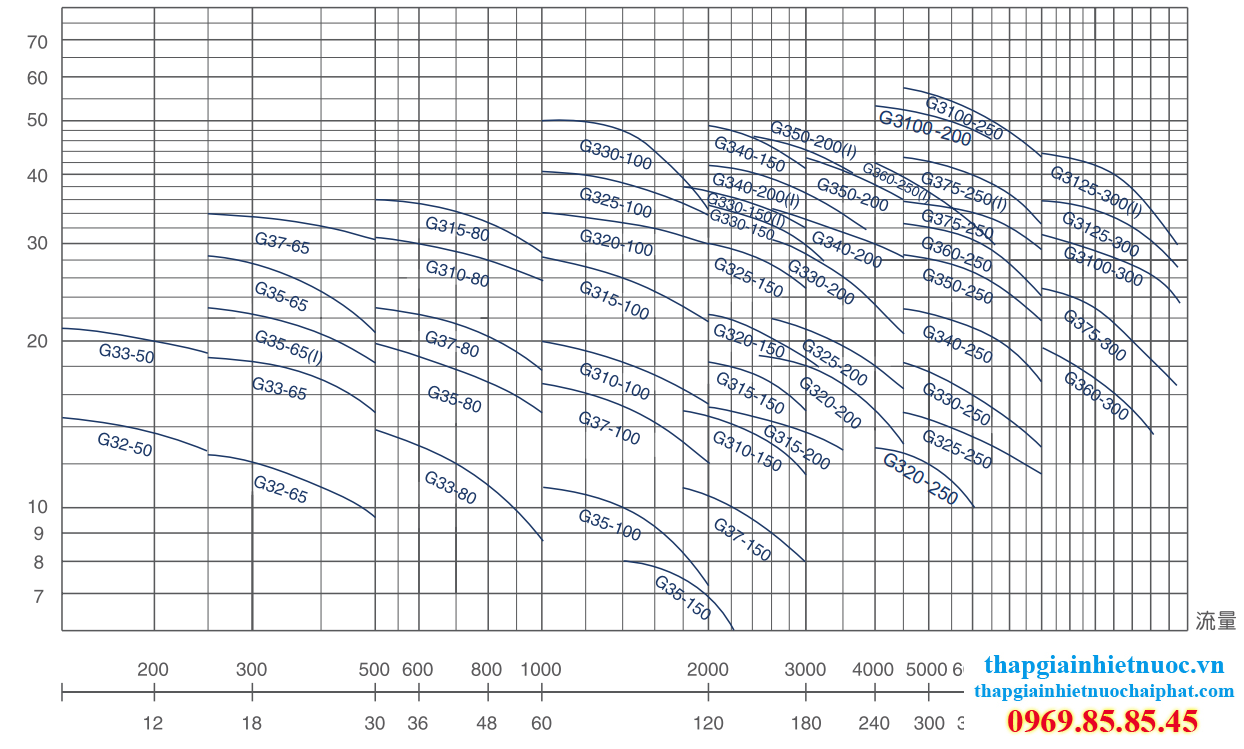 Lưu lượng của bơm được xác định qua tháp giải nhiệt.